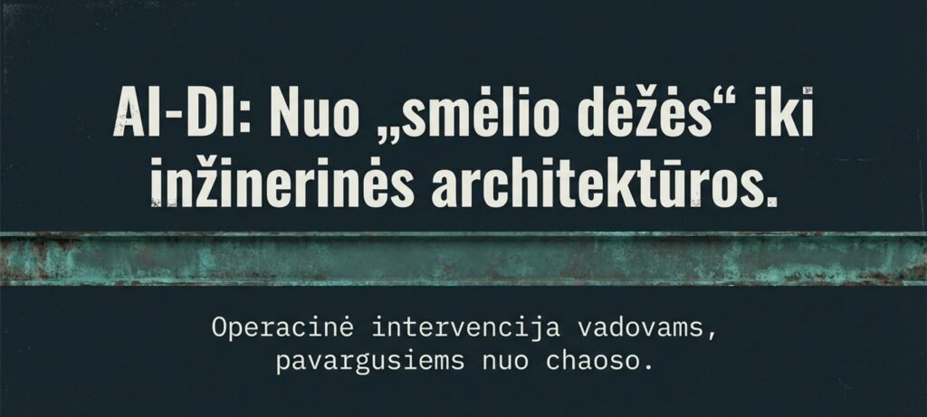 Atsisakome spekuliacijų apie „neribotas galimybes“, kurias neva suteikia DI įsisavinimas. Prioritetą teikiame kritinėms operacinėms trikdžių zonoms, kurios šiandien generuoja tiesioginius laiko ir kapitalo praradimus.