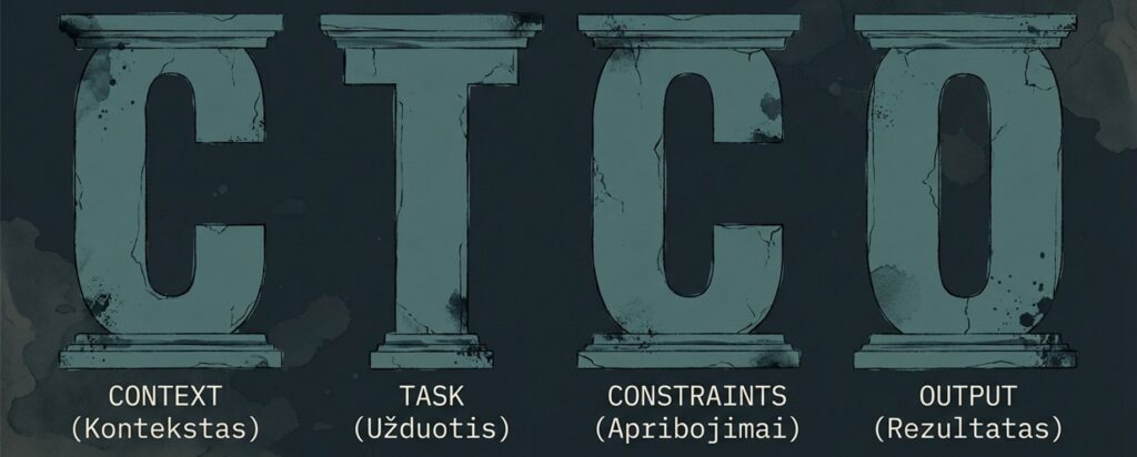 CTCO sistema: Context (kontekstas) – Task (užduotis) – Constraints (apribojimai) – Result (rezultatas)